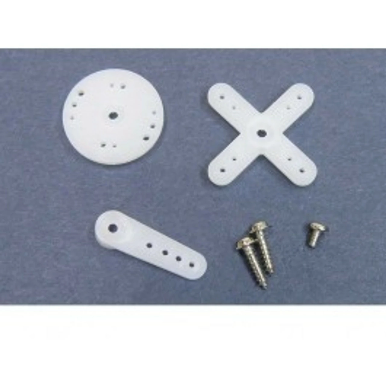 Includes three nylon servo horns, two servo mounting screws and one servo horn retaining screw.